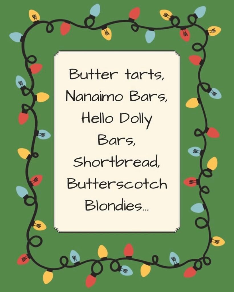 * Maple Butter Tarts– The OG of Canadian classics. Rich, buttery maple caramel in a flaky crust. Choose from raisin, pecan, or plain Jane.