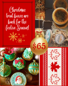 *  Maple Butter Tarts– The OG of Canadian classics. Rich, buttery maple caramel in a flaky crust. Choose from raisin, pecan, or plain Jane.